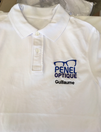 Broderie coeur sur polo blanc pour un opticien à la Rochelle.