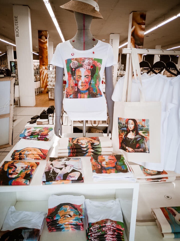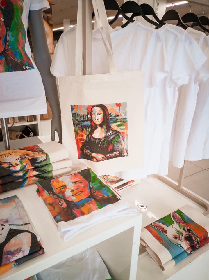 Impression numérique de t-shirt pour une artiste peintre vente de ses créations sur t-shirt à Saintes.